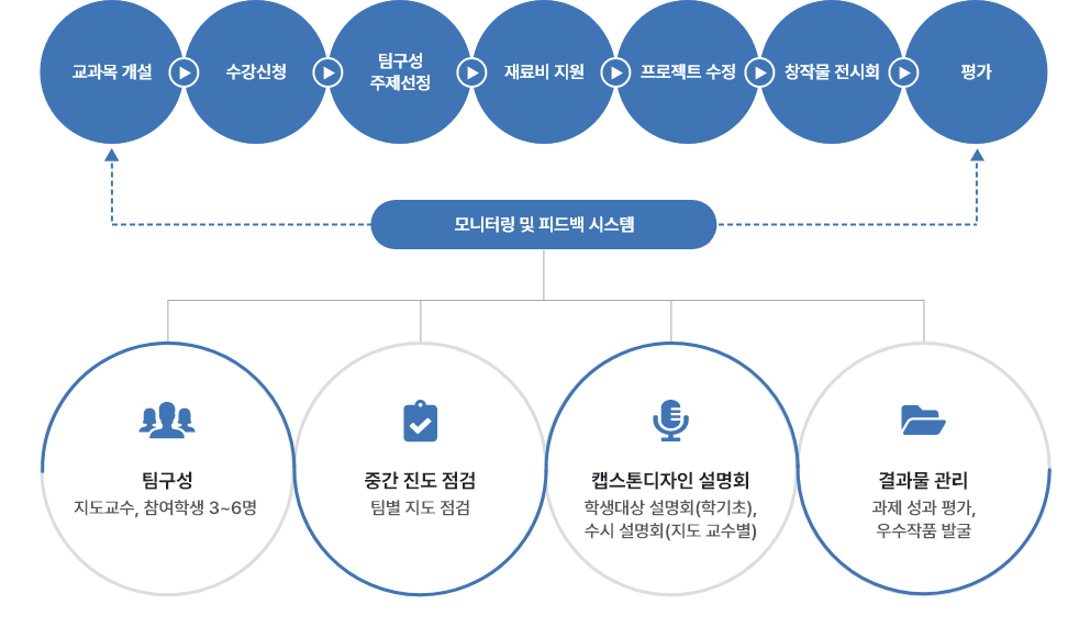 캡스톤디자인(Capstone Design)은 전공지식을 바탕으로 산업체의 경영, 기술 등 문제해결을 위해 팀을 구성하고 대상을 계획, 설계, 제작 및 평가의 전 과정을 경험하게 함으로써 학생들의 창의적 문제해결 능력을 향상시키고 산업현장의 수요에 적합한 실무 능력을 향상 시킬 수 있는 산학연 연계 교과목